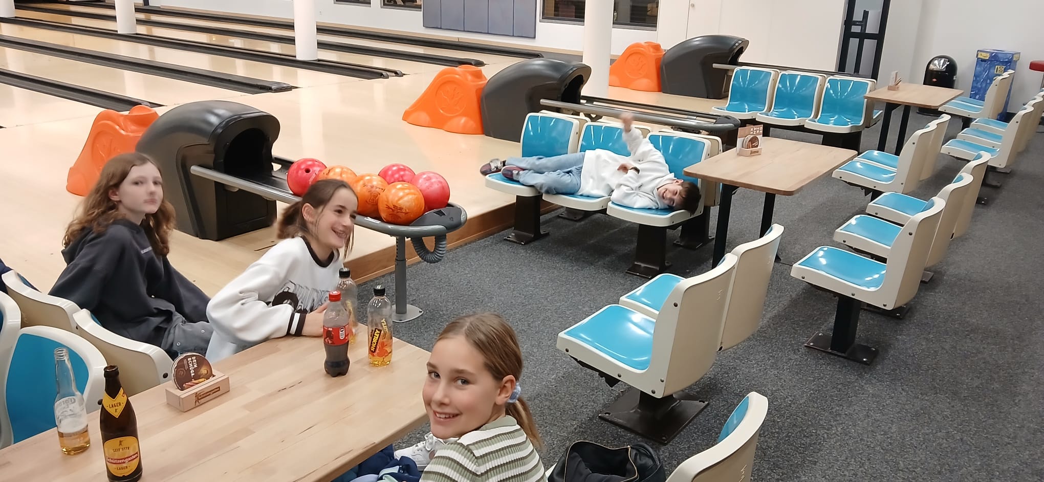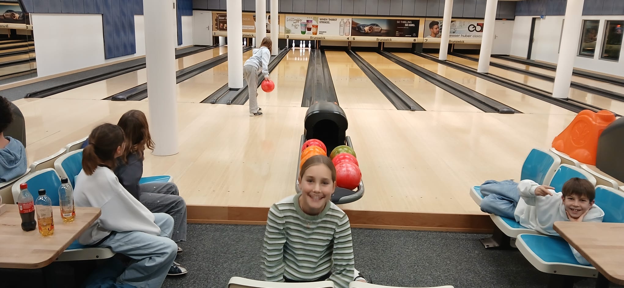 Danach spielten wir Dart. Da waren nicht alle sonderlich erfolgreich :-). Lara war aber sehr geschickt und hat oft das Triple getroffen. Endlich wurde eine Bowlingbahn frei, und wir haben die Kugel nach hinten geschossen. Lara hat auch hier gewonnen, doch sie hatte die Banden zur Hilfe. Zweiter wurde Laurin ohne Banden und danach Leana mit Banden. Für viele war es das erste oder zweite Mal bowlen, aber alle hatten grossen Spass.