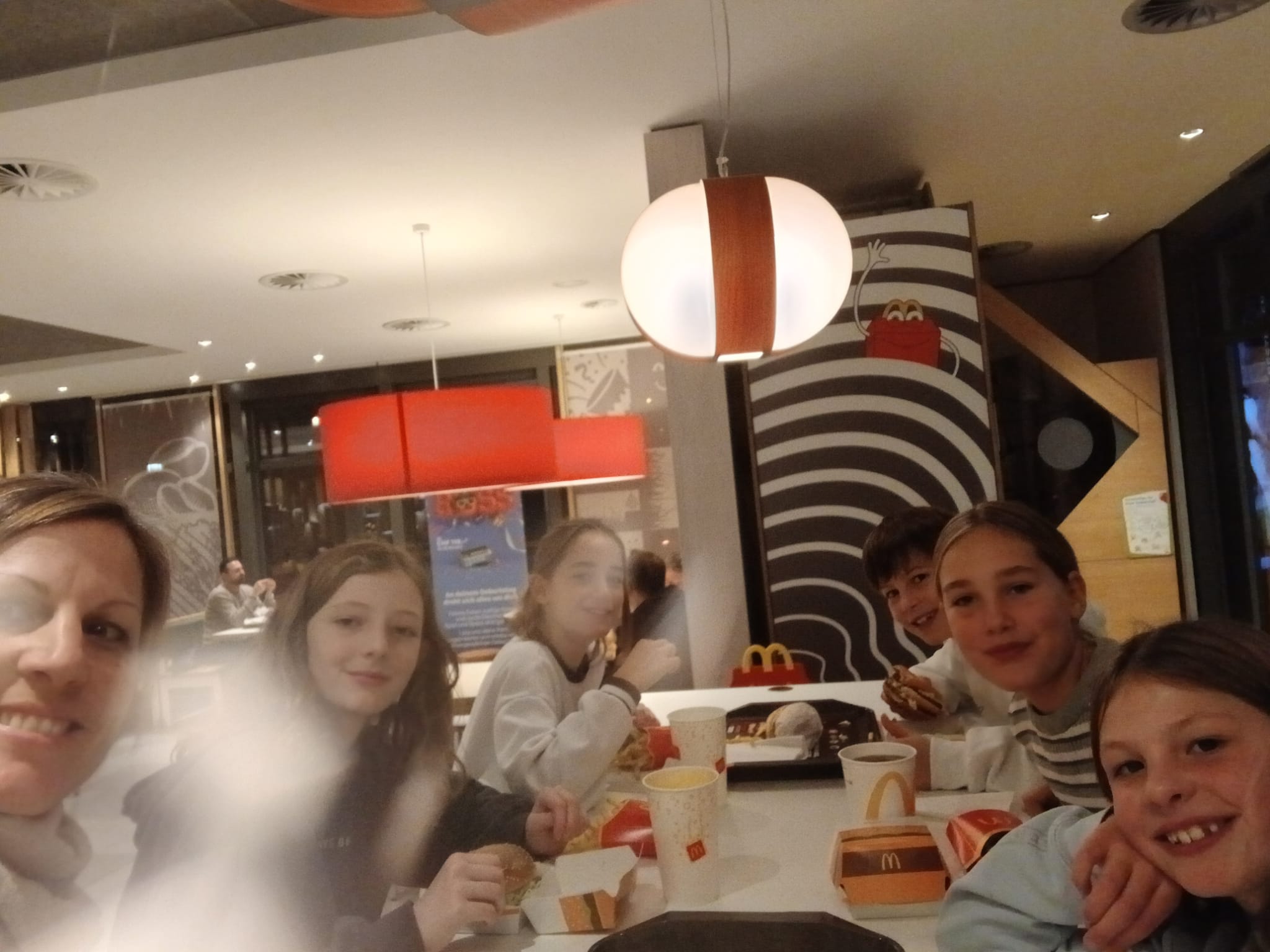 Nach dem Bowlen sind wir zum McDonald’s rübergelaufen. Wir haben so viiiiiel gelacht und hatten sooo viel Spass! Wir haben uns Geschichten aus dem Leben erzählt, über Lehrer, Freunde und Mitschüler. Es waren sehr lustige Geschichten darunter. Laurin war zwar der einzige Junge, aber das machte ihm nichts aus, denn er hatte mit uns Mädchen sehr viel Spaß. Wir waren zwar die Lautesten, aber das war uns egal. Wir hatten einen coolen Tag. Vielen Dank an die FG RiWi für diesen tollen Nachmittag zu Ehren unserer Nachwuchsleistungen!